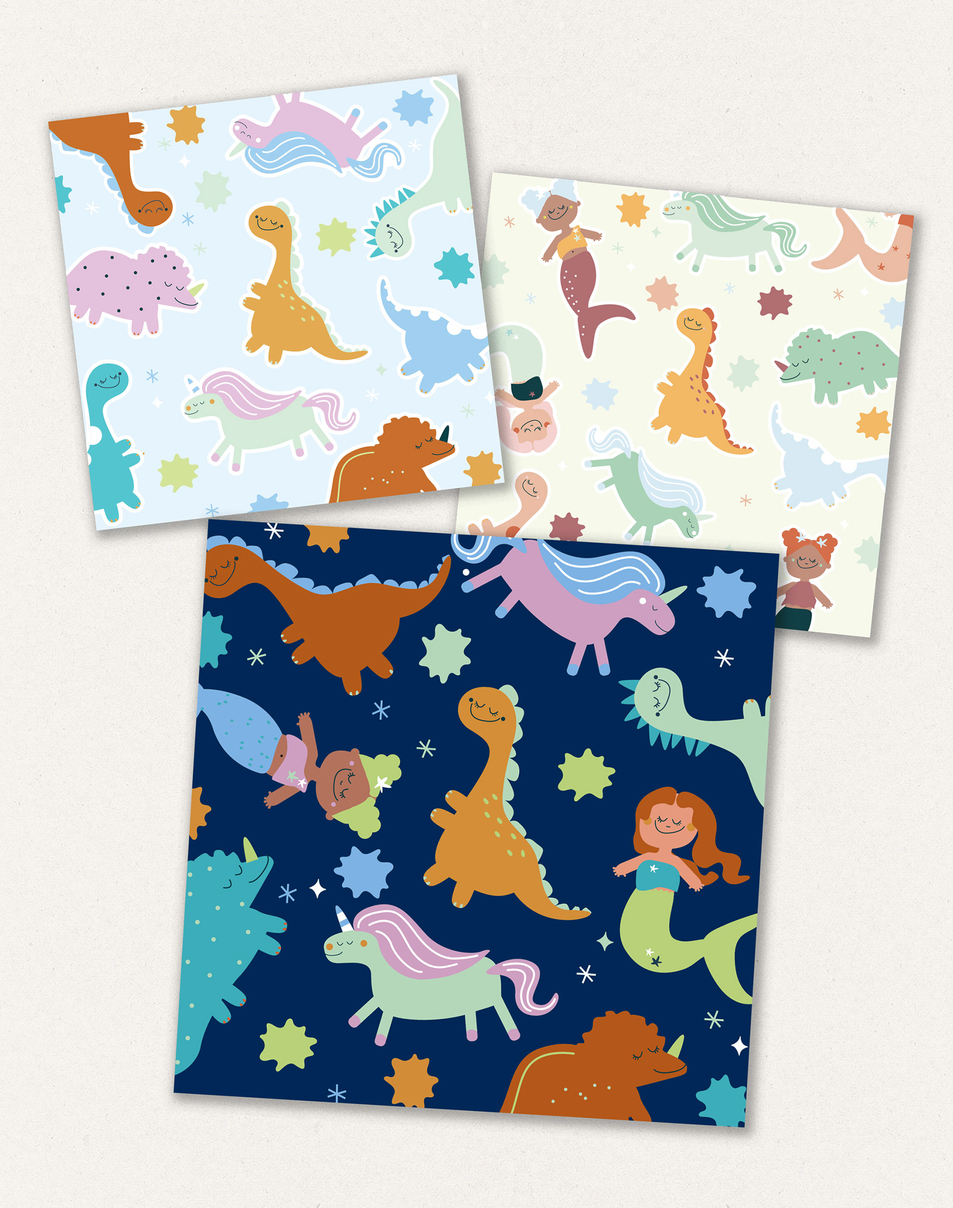 Original illustrated pattern for new soft n' crinkly Friendly Creatures design.