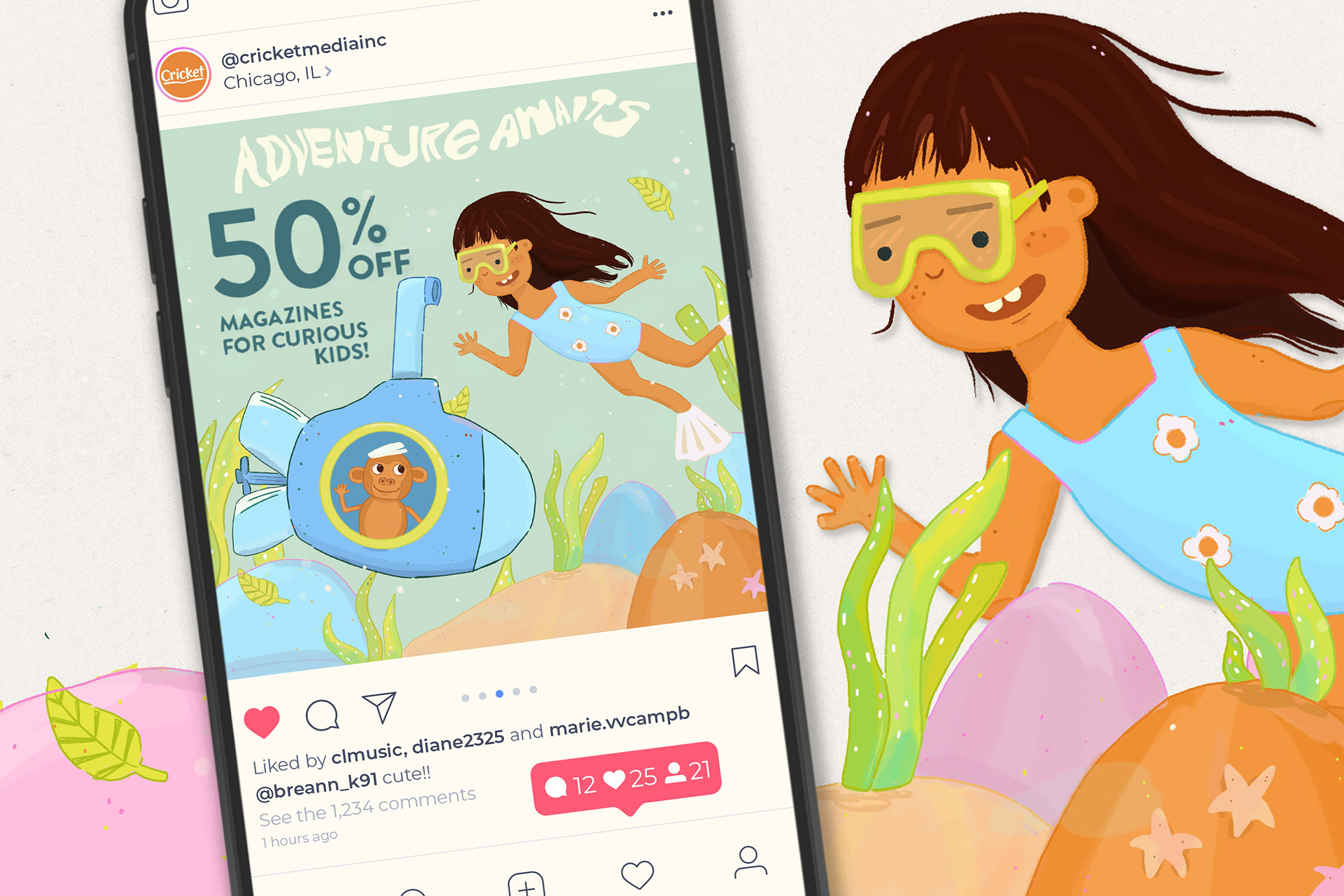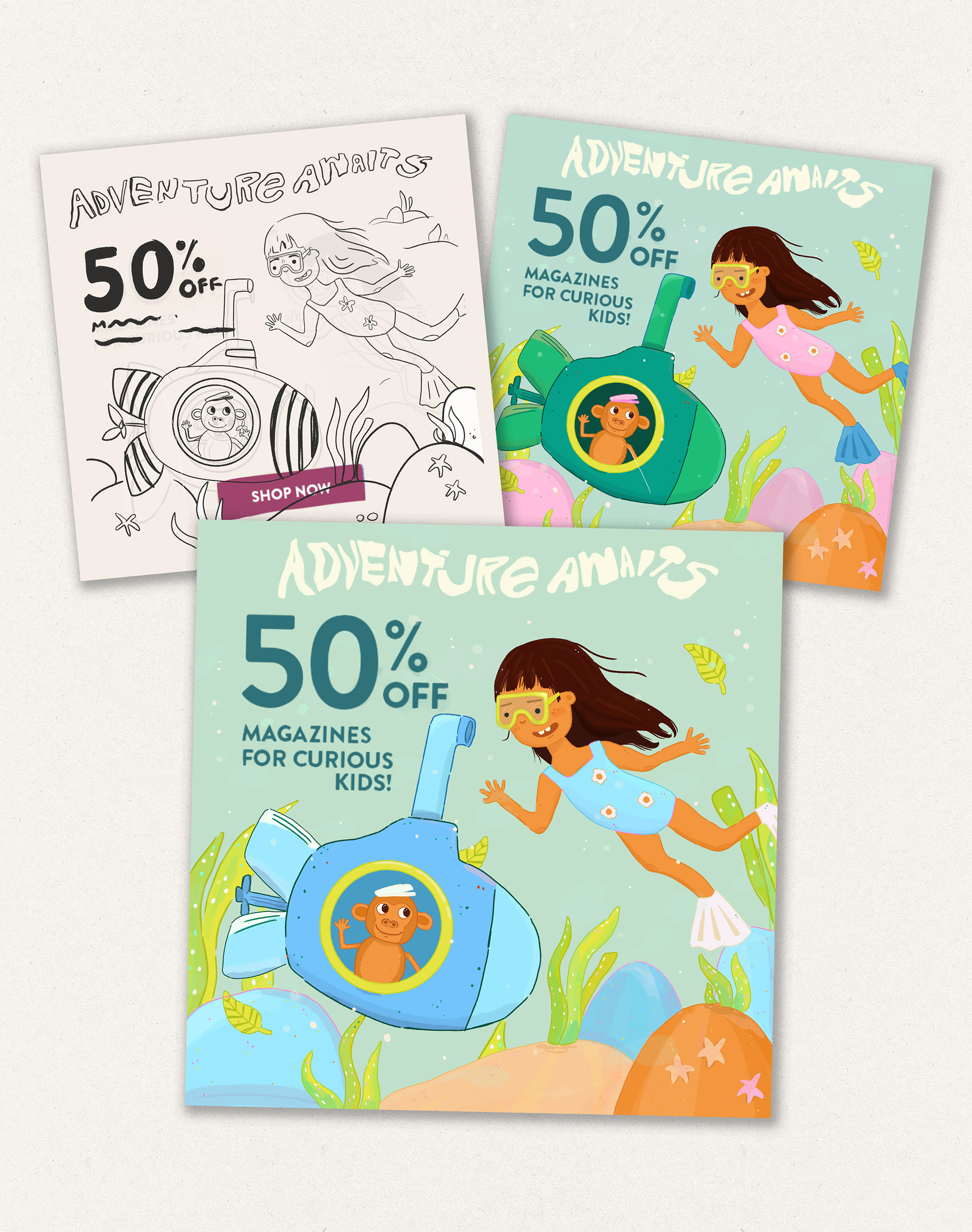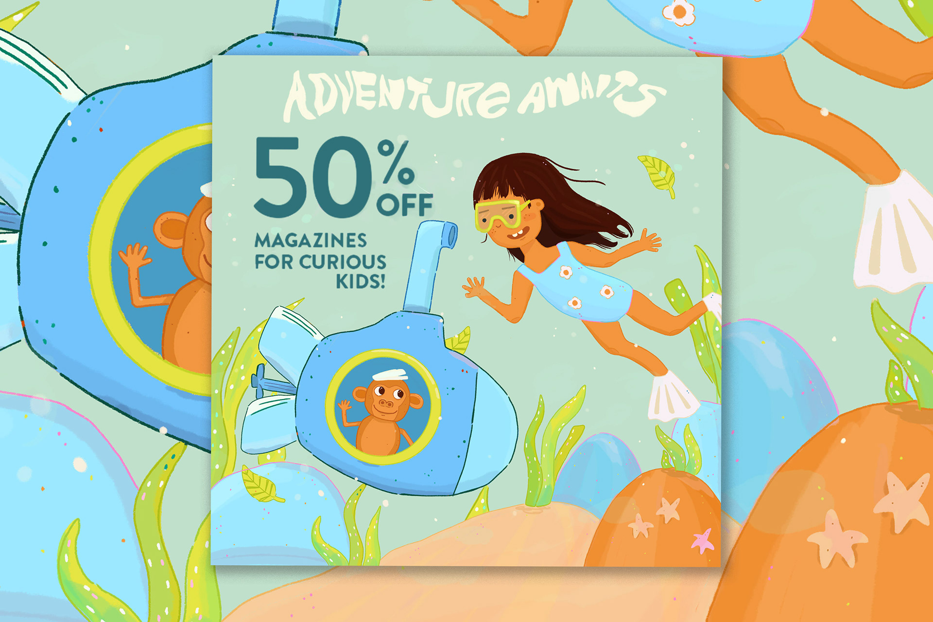 Original monkey and explorer illustration for email alert and social media post for upcoming sale.